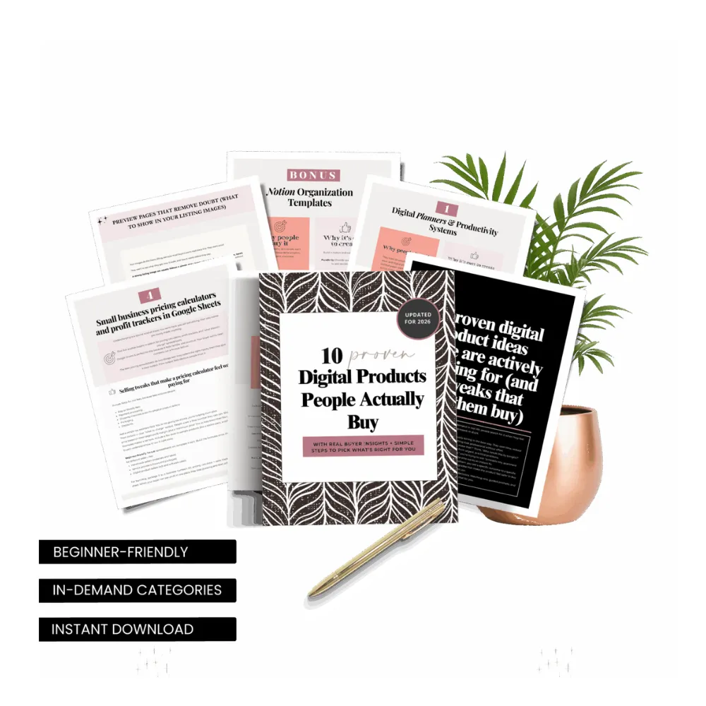 This GUIDE includes 10 proven digital product ideas people are actively searching for plus a free starter resell template so you can start creating and listing faster. It’s beginner-friendly, practical, and designed to help you pick an idea that already has demand then actually do something with it.