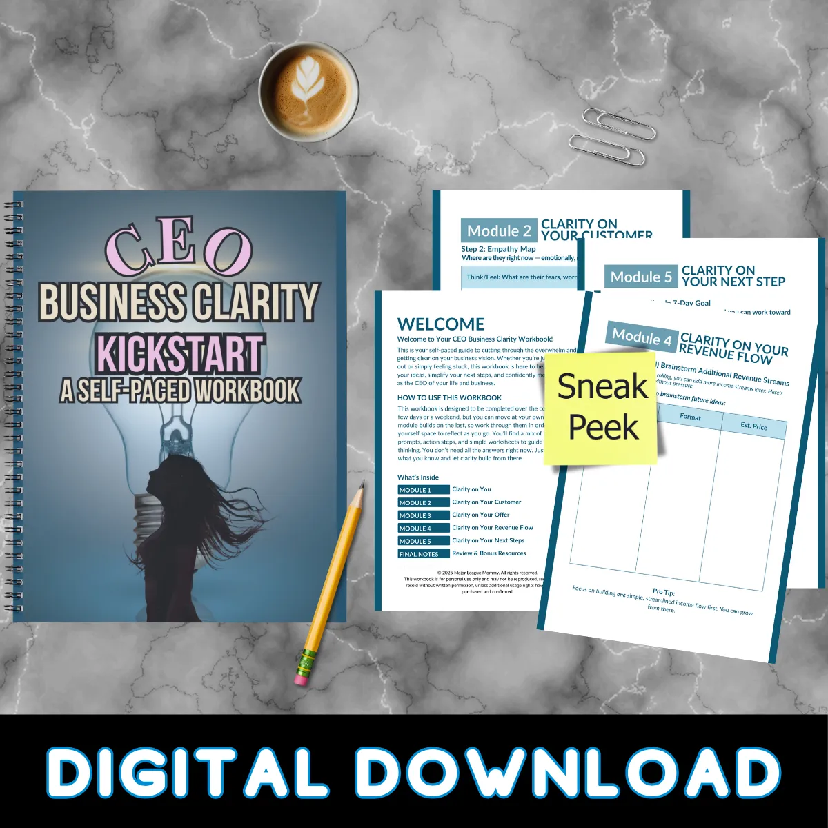 In this high-energy course, you'll get a 6-month step-by-step plan to turn your side hustle into full-time income. Learn how to create a high-ticket offer, manage your time like a CEO, and exit your 9-to-5 with grace (and maybe a little sass). It’s your holiday countdown to freedom, and it starts now!